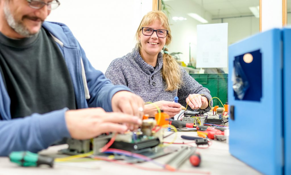 Dirk Frischmeier: Zunächst wurde die Arbeit von nur einer Arbeitsgruppe mit 18 Beschäftigten im Elektronikbereich aufgenommen. Im Laufe der Jahre entwickelten sich bedarfsorientiert weitere Betätigungsfelder und unser Arbeitsspektrum erweiterte sich um die Datendigitalisierung, ein Sozialkaufhaus „Fairkauf“, einem Logistikbereich, einem Metallbereich, Montage und Verpackungsarbeiten sowie einzelnen bereits in Industriebetrieben ausgelagerten Arbeitsplätzen.