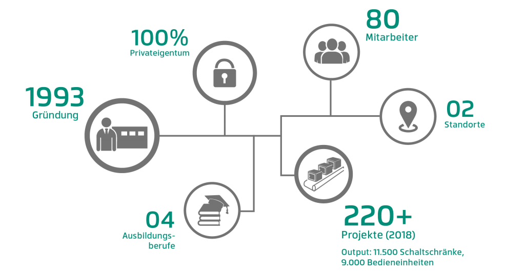 …ist die Kernkompetenz der Firma gleichgeblieben. Die Bandbreite der Schaltanlagen erstreckt sich vom individuellen Produkt mit einem Schaltschrank in der Losgröße 1 bis zur Serienfertigung in größeren Stückzahlen. Der Schwerpunkt liegt vor allem im Bereich der Steuerungs- und Leistungseinheiten, im Projektgeschäft und der in Serienproduktion.